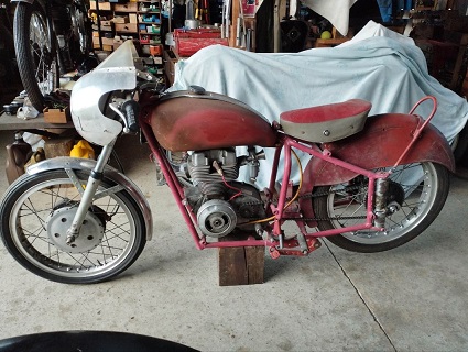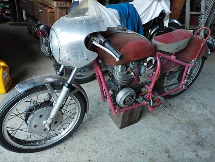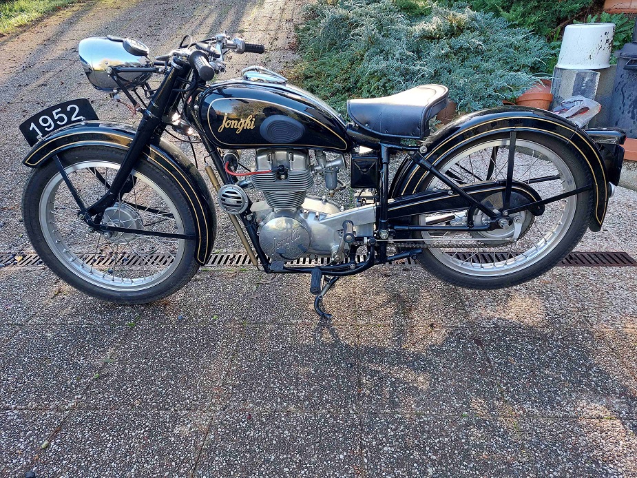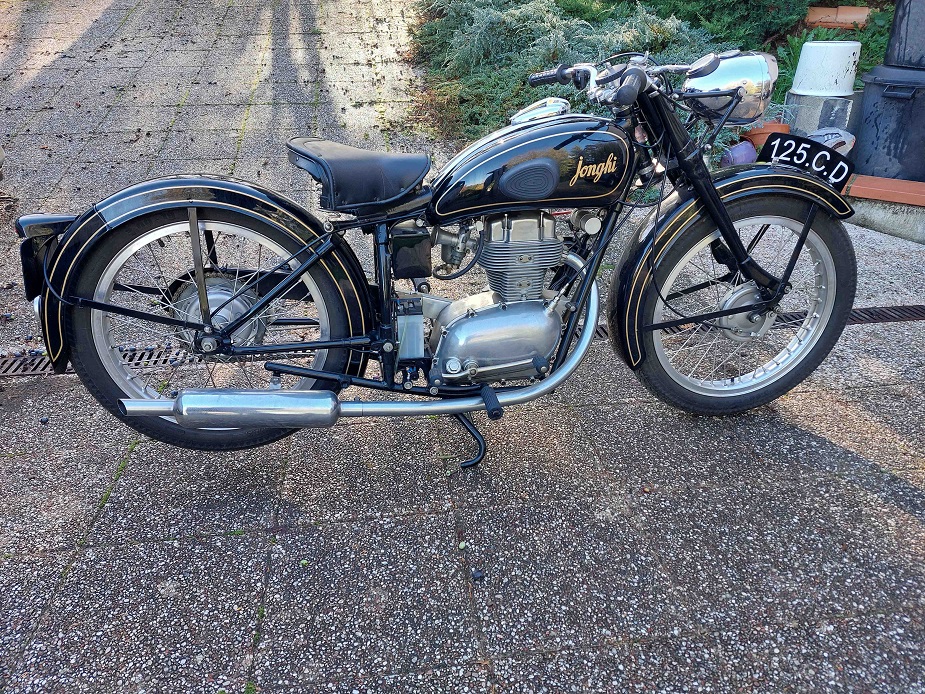 Extrait du Moto-revue n°1052 octobrre 1951. " Jonghi est parti pour sa 250 de son modèle 125 A.C.T .Le cadre, très robuste, est resté inchangé ,seuls des moyeux freins centraux Collignon ont été montés sur le prototype en remplacement des tambours ordinaires".